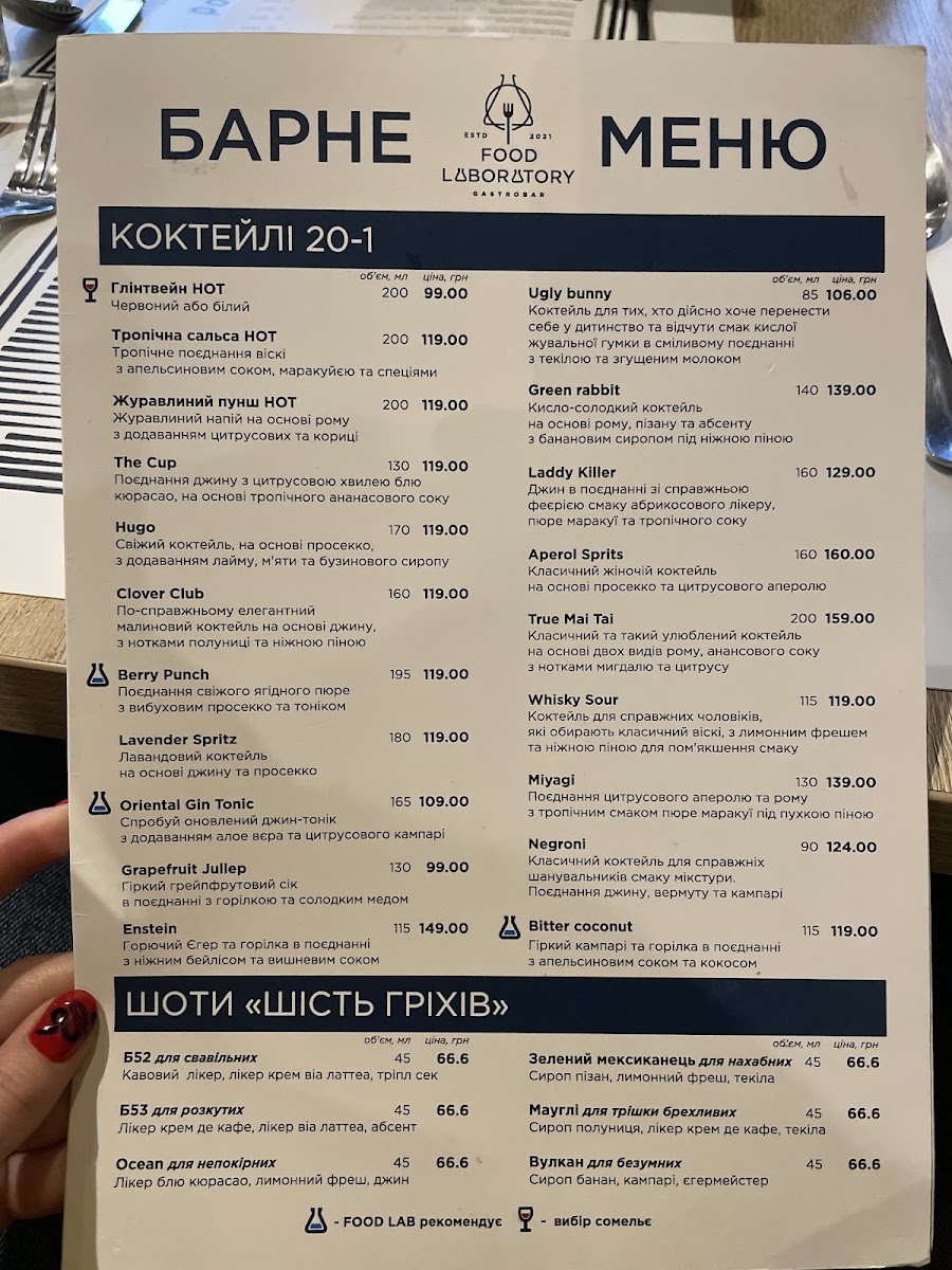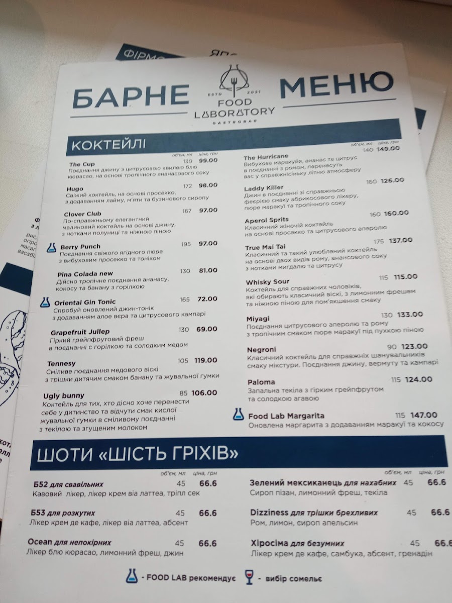 Welcome to FOOD LABORATORY Gastrobar, a cozy gem located on Yelyzavety Chavdar St in Kyiv. Known for its inviting atmosphere, this gastrobar expertly blends fine wines and innovative cocktails, creating a perfect backdrop for an enjoyable evening.